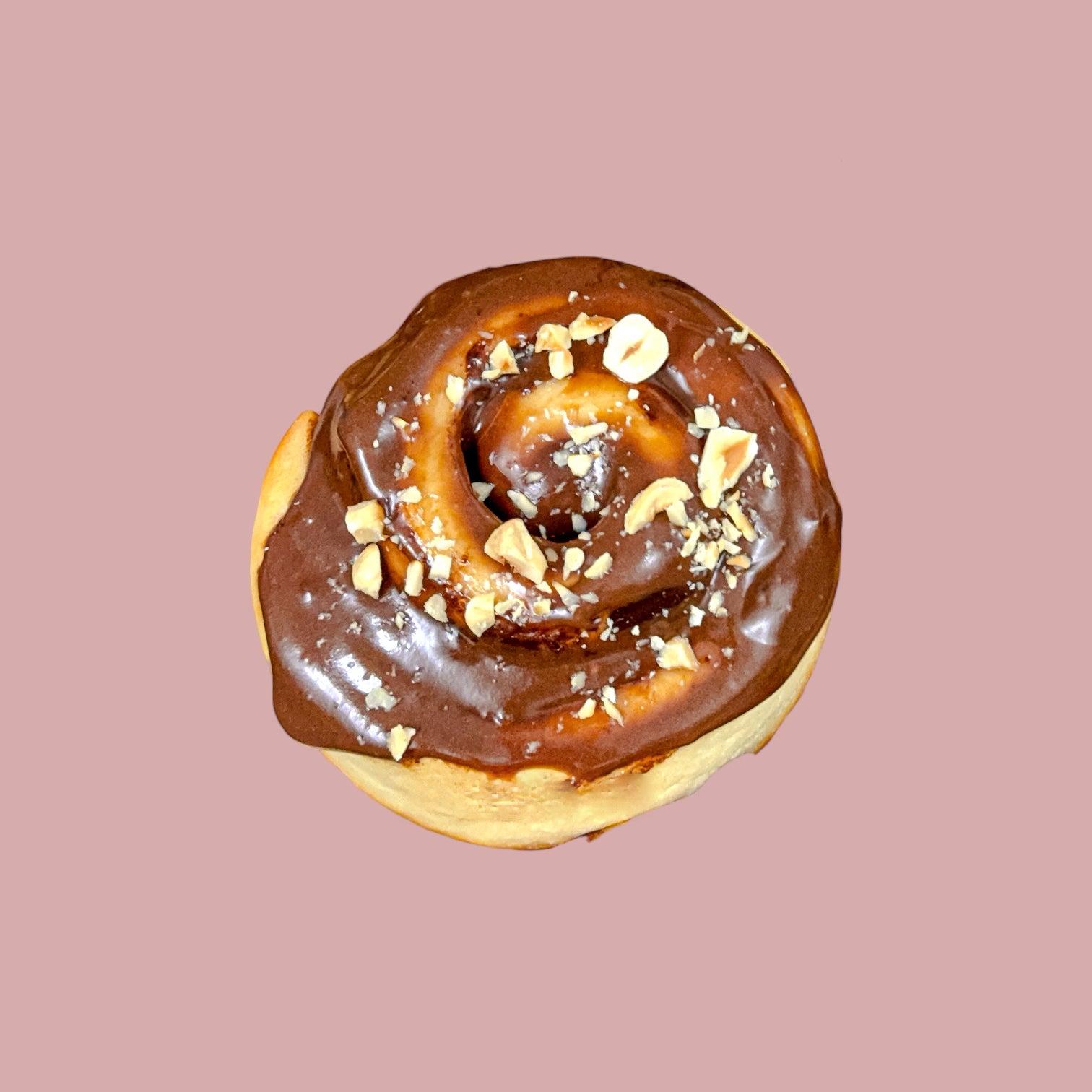 Rollito con relleno de Nutella y glaseado de Nutella.